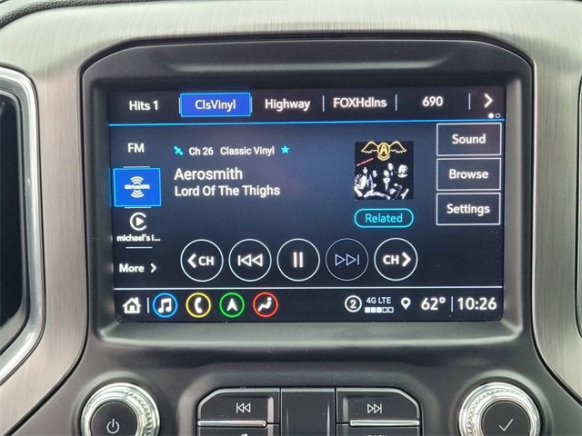 Bluetooth®, Apple CarPlay/ Android Auto, Sierra 1500 Denali, 3.0L I6, 10-Speed Automatic, 4WD, 12-Volt Rear Auxiliary Power Outlet, 120-Volt Bed Mounted Power Outlet, 120-Volt Instrument Panel Power Outlet, 170 Amp Alternator, 2 USB Ports, 2 USB Ports (1st Row), 4-Wheel Disc Brakes, 4G LTE Wi-Fi Hotspot Capable, Adaptive Cruise Control, AM/FM radio: SiriusXM with 360L, Auto-Locking Rear Differential, Automatic Emergency Braking, Automatic temperature control, Auxiliary External Transmission Oil Cooler, Bed View Camera, Chrome Recovery Hooks, Chrome Wheel To Wheel Assist Steps, Color-Keyed Carpeting Floor Covering, Compass, Deep-Tinted Glass, Denali Ultimate Package, Driver Alert Package I, Driver Alert Package II, Electric Rear-Window Defogger, Electrical Lock Control Steering Column, Floor-Mounted Center Console, Following Distance Indicator, Forward Collision Alert, Front Pedestrian Braking, Fully automatic headlights, GMC Connected Access Capable, GMC MultiPro Power Steps, HD Rear Vision Camera, HD Surround Vision w/2 Trailer View Camera Provisions, Heated Driver & Front Outboard Passenger Seating, Heavy-Duty Air Filter, Hill Descent Control, Hitch Guidance, Hitch Guidance w/Hitch View, In-Vehicle Trailering App, Integrated Trailer Brake Controller, IntelliBeam Automatic High Beam On/Off, Keyless Open & Start, Lane Change Alert w/Side Blind Zone Alert, Lane Keep Assist w/Lane Departure Warning, LED Cargo Area Lighting, Manual Tilt-Wheel & Telescoping Steering Column, Multicolor 15 Diagonal Head-Up Display, Navigation System, OnStar & GMC Connected Services Capable, Power Door Locks, Power Front Passenger Windows w/Express Up/Down, Power Front Windows w/Driver Express Up/Down, Power Rear Windows w/Express Down, Power Sliding Rear Window w/Rear Defogger, Power Sunroof, Preferred Equipment Group 5SA, Premium Bose 7-Speaker Sound System, ProGrade Trailering System, Radio: Premium GMC Infotainment Sys w/Navigation, Rear Camera Mirror, Rear Cross Traffic Alert, Rear Dual USB Charging-Only Ports, Rear Wheelhouse Liners, Remote Vehicle Starter System, Safety Alert Seat, Signature Denali Grille, SiriusXM w/360L, Spray-On Pickup Bed Liner w/Denali Logo, Steering Wheel Audio Controls, Technology Package, Theft Deterrent System (Unauthorized Entry), Traction control, Trailering Package, Ultrasonic Front & Rear Park Assist, Universal Home Remote, Ventilated Driver & Front Passenger Seats, Wheel Locks (Set of 4) (LPO), Wheels: 22 x 9 Multi-Dimensional Polished Alum, Wireless Charging.