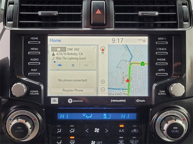 Bluetooth®, Apple CarPlay/ Android Auto, 4Runner Nightshade, 4WD, 15 Speakers, 4-Wheel Disc Brakes, ABS brakes, AM/FM radio: SiriusXM, Auto High-beam Headlights, Automatic temperature control, Exterior Parking Camera Rear, Fully automatic headlights, Heated front seats, Leather-Trimmed 50/50 Split Fold-Flat 3rd Row, Navigation System, Nightshade Leather Seat Trim, Power moonroof, Radio: Premium JBL Audio, Security system, Traction control, Trunk Carpet, Ventilated front seats, Wheels: 20 Black Alloy.